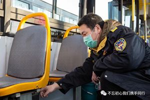 “細(xì)微之處見(jiàn)真章”?;榇箨?duì)要求線上車(chē)輛嚴(yán)格按照防疫流程,有效對(duì)乘客進(jìn)行實(shí)名登記、體溫測(cè)量的同時(shí),隊(duì)員們個(gè)個(gè)親力親為協(xié)助做好防疫消殺等工作。更有8人主動(dòng)請(qǐng)纓,復(fù)工初期幫118路保潔出4部運(yùn)營(yíng)車(chē)輛,直干到深夜22:30才收工。無(wú)論早高峰站點(diǎn)值守、始發(fā)站乘客檢測(cè)體溫還是公交車(chē)清潔消毒,都能看到稽查隊(duì)員沖鋒在前的身影。