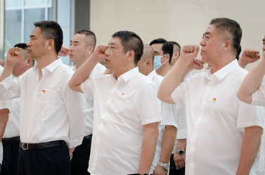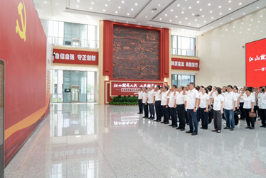 參觀前,參加活動(dòng)的黨員干部集體面對(duì)鮮紅黨旗重溫入黨誓詞。鏗鏘有力的宣誓聲,表達(dá)了唐山公交廣大黨員干部對(duì)黨忠誠(chéng)的鄭重承諾,始終不忘初心、牢記使命、聽(tīng)黨話、跟黨走的堅(jiān)定決心。