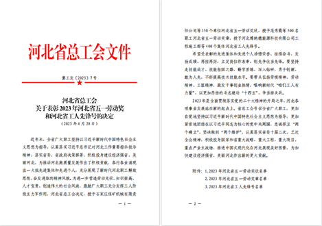 2023年4月28日,河北省總工會發(fā)布《關(guān)于2023年河北省五一勞動獎和河北省工人先鋒號的決定》,唐山交發(fā)集團(tuán)公交總公司二公司 2 路營運車隊被授予2023年“河北省工人先鋒號”榮譽稱號,唐山交發(fā)集團(tuán)公交總公司四公司 46 路駕駛員翟澤明被授予2023年河北省五一勞動獎?wù)隆?/span>