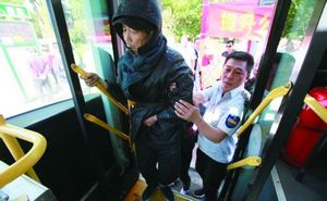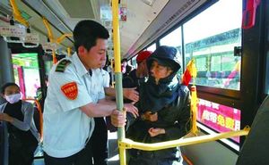 夫妻倆看到當(dāng)時(shí)值班司機(jī)馮達(dá),感激一笑。趙淑榮攙扶起輪椅上的丈夫,這時(shí)有一雙手給了她有力的支撐。原來(lái),司機(jī)馮達(dá)在看到夫妻倆時(shí),早已來(lái)到趙淑榮身邊,幫著她一起把江偉扶上公交車。一邊扶著老人,馮達(dá)一邊提醒車上的市民,“麻煩哪位好心人給這位老人讓個(gè)座,謝謝大家了。”