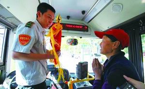 5月5日,趙淑榮來(lái)到文化路旁的28路公交車站點(diǎn),親手將錦旗送給了車上的司機(jī)。三年多來(lái),28路公交車司機(jī)風(fēng)雨無(wú)阻,幫助趙淑榮攙扶她患有腦梗后遺癥的老伴上車、下車,安全地送他們到達(dá)目的地。“沒(méi)有他們幫助,我和丈夫真沒(méi)法出門(mén),真的太感謝這些好心人了。”趙淑榮感激地說(shuō)。