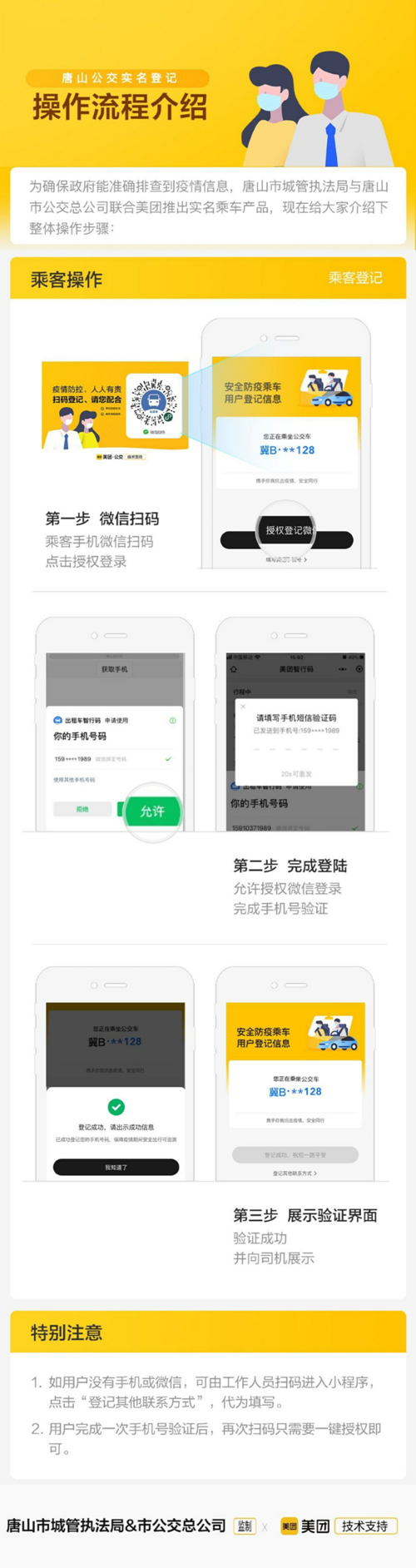 該實(shí)名制登記系統(tǒng)是唐山市城管執(zhí)法局、唐山公交總公司與美團(tuán)公交合作開(kāi)發(fā),已覆蓋所有公交車,實(shí)現(xiàn)了“一車一碼”。登記的相關(guān)信息使用專用服務(wù)器予以加密保存,既杜絕了登記信息泄露的風(fēng)險(xiǎn),又可有效減少因手工登記帶來(lái)的接觸風(fēng)險(xiǎn)。在此倡議乘客朋友積極配合、文明乘車,有序排隊(duì)掃碼登記,請(qǐng)予理解和支持。