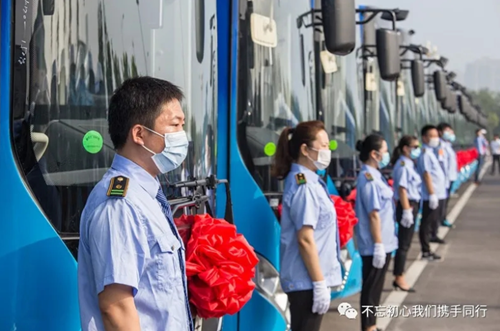 8月11日上午,唐山市新能源公交車上線運營啟動儀式在唐山站公交樞紐舉行,市委常委、常務副市長付振波,市政府副秘書長、“一港雙城”辦主任任艾泉,市人大城環(huán)委主任王玉升,市城管執(zhí)法局黨組書記、局長冀桂梅,市政協(xié)提案委辦公室主任劉貴臣,市交通運輸局副局長李東興,市城管執(zhí)法局四級調(diào)研員石中波,總公司總經(jīng)理劉東占、黨委書記夏保良出席啟動儀式。在啟動儀式上,市城管執(zhí)法局黨組書記、局長冀桂梅同志致詞,總結概括近年來唐山公交事業(yè)發(fā)展取得成績,全面介紹了純電動公交車更新?lián)Q代情況,市委常委、常務副市長付振波同志宣布2020年唐山市新能源公交車正式啟用上線運營。
