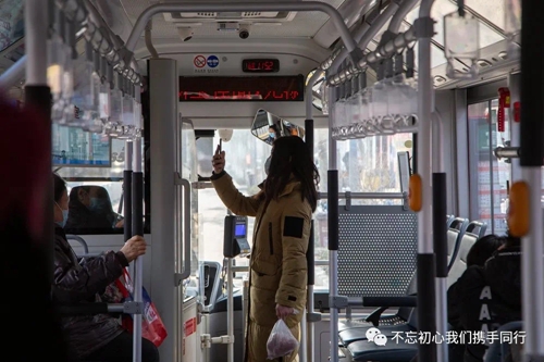 我察覺(jué)大家逐漸習(xí)慣乘公交戴口罩、上車自動(dòng)伸手讓駕駛員檢測(cè)體溫、主動(dòng)掃碼,但也難免出現(xiàn)大意的時(shí)候。有次一個(gè)小伙子在車上可能感覺(jué)悶了,隨手拉下口罩,被我洞察敏銳的搭檔從后視鏡一眼瞥見(jiàn),馬上提醒他戴好口罩。