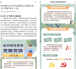 另外,總公司黨委還組織領(lǐng)導(dǎo)班子成員對《中國共產(chǎn)黨黨徽黨旗條例》內(nèi)容進行了學(xué)習(xí),并將如何規(guī)范使用黨旗黨徽的規(guī)定內(nèi)容制作成“云黨課”,下發(fā)各基層黨組織及黨員干部進行學(xué)習(xí)。