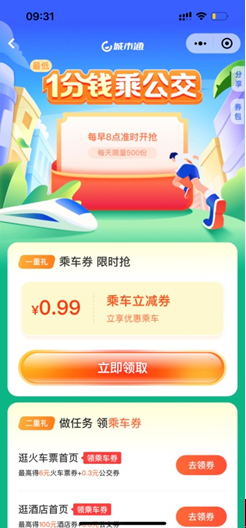 首次開通乘車的用戶,可參與活動(dòng)領(lǐng)取【0.99元公交乘車立減券】