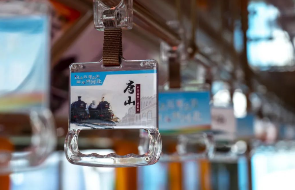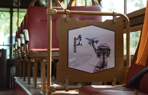 車身外形與眾不同,車內(nèi)文化也極具特色。交發(fā)集團(tuán)以“一車一主題”為原則,打造了工業(yè)歷史、旅游景點(diǎn)、特色美食、戲曲文化等多個(gè)主題文化車廂。利用燈箱、擋板、拉手等車內(nèi)設(shè)施,以圖文并茂的形式介紹唐山文化,串起唐山百余年發(fā)展的歷史脈絡(luò)。鐺鐺車成為了傳遞歷史文化的“流動(dòng)課堂”,整個(gè)車廂營(yíng)造出濃厚的特色文化氛圍。