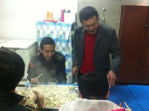 總經(jīng)理趙俊良來到二公司時,正好遇上黃海廠家的兩名售后服務(wù)人員因工作需要留在了唐山過年,趙總真誠地邀請他們一道吃餃子、過大年。他們由衷地稱贊唐山公交:我們的企業(yè),從沒遇到過這樣的事,感覺你們的企業(yè)就像一個大家庭。我們在這里過年,也感受到了這濃濃的家一般的親情!黨委書記、副總經(jīng)理夏保良到三公司銀河路車場慰問時,不僅詳細(xì)了解了路隊節(jié)期的工作安排情況,還親自為職工煮餃子,遞到跑車回來的司機(jī)手中,微笑地囑咐他們趁熱吃、多吃點。狹小的廚房,水氣氤氳,處處洋溢著新春的喜悅和干群同心的和諧。