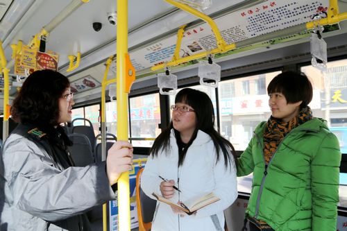 調(diào)研過程中,劉部長聽取了總公司團委書記付昱關(guān)于打造“公交志愿服務”品牌車組的工作情況匯報。在來到26路周麗媛車組時,劉部長詳細詢問了26路紅絲帶活動的進展情況、乘客反饋等。劉部長先后乘坐了2路全國勞模鄭玉曉、46路綠色先鋒號汪亞娟駕駛的公交車,在看到車上設(shè)置的青年志愿者服務便民箱后,給予了高度評價,她強調(diào),青年志愿者服務要落地、接地氣,從自己的本職工作做起,要著眼于細節(jié),真真正正做到公交優(yōu)秀,要結(jié)合公交青年工作實際,努力培養(yǎng)和造就一支奉獻、友愛、互助、進步的青工隊伍??偣緢F委也將以點帶面,在全公司范圍內(nèi)繼續(xù)深入開展“青年志愿者服務崗”活動,選樹典型,提高青年職工的奉獻理念和服務水平。